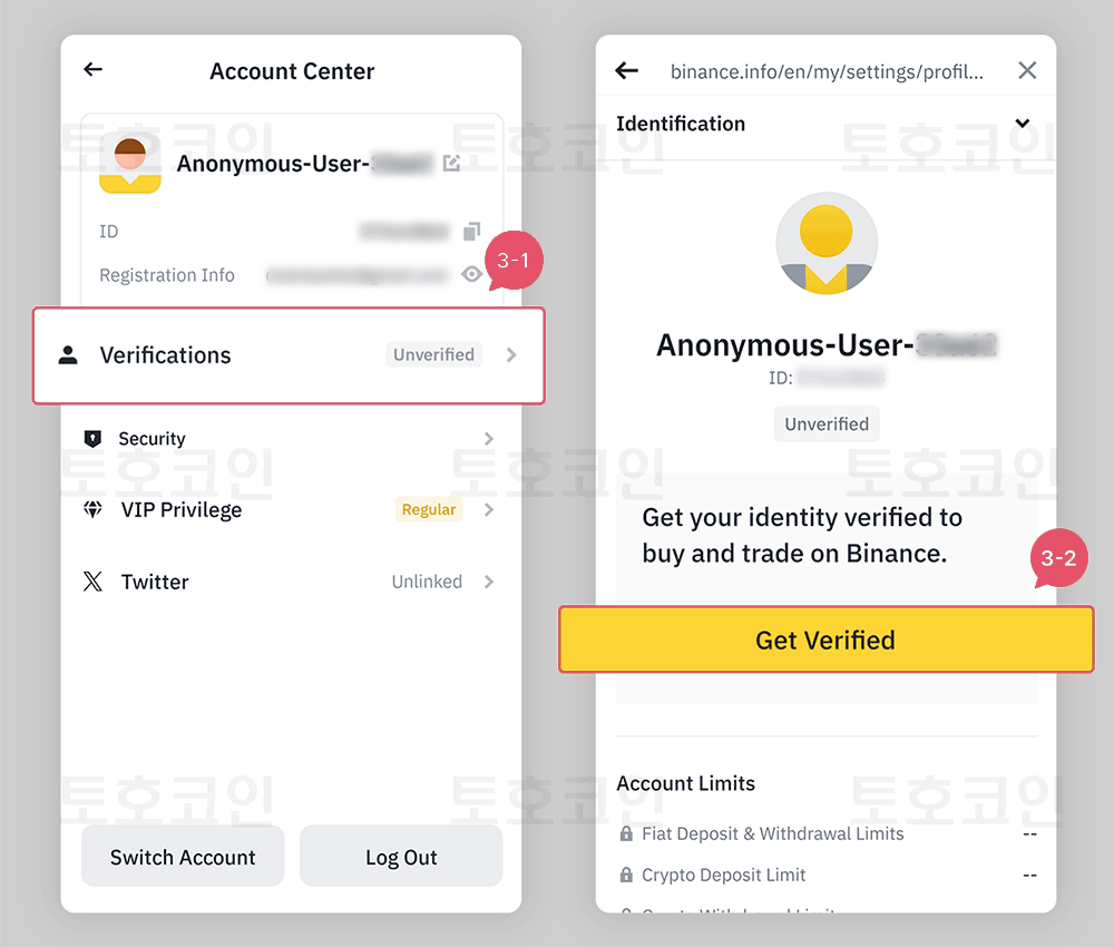 팝업된 페이지에서 3-2. GetVerified 버튼을 클릭해 줍니다.