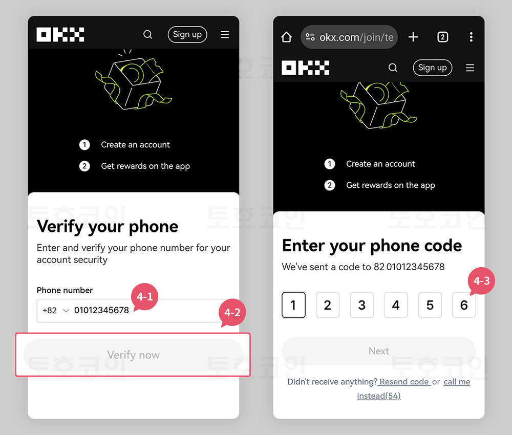 4-1. 휴대폰을 입력후 4-2. Verify Now버튼을 클릭해 줍니다.